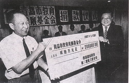 1997年5月28日海川向青島市教育發(fā)展基金會(huì)贊助20萬元,設(shè)立青島市首家施工企業(yè)命名的教師素質(zhì)教育基金
