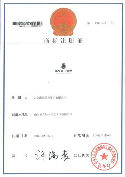 2016年5月16日,公司正式收到“泓久海川建設(shè)”商標注冊證書,這標志著海川集團沿用六十多年的標志正式成為商標,受國家法律保護,為公司進一步創(chuàng)建企業(yè)品牌、搶占市場先機、開拓埠外市場夯實了基礎(chǔ)。