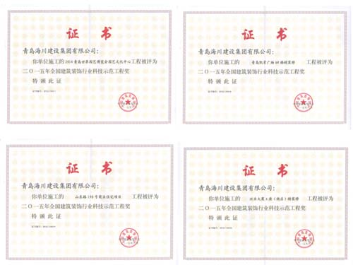 近日,海川集團(tuán)從中國建筑裝飾協(xié)會捧回4項(xiàng)全國建筑裝飾行業(yè)“科技示范工程”和4項(xiàng)“科技創(chuàng)新成果”的證書和獎牌。分別為: