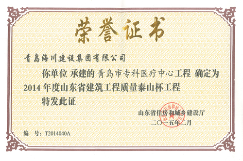 近日,公司從山東省住房和城鄉(xiāng)建設(shè)廳捧回五項(xiàng)泰山杯獎證書,其中2014年度山東省建筑工程質(zhì)量泰山杯工程證書三項(xiàng);2014年度山東省建筑裝飾裝修工程質(zhì)量“泰山杯”工程證書兩項(xiàng)。
