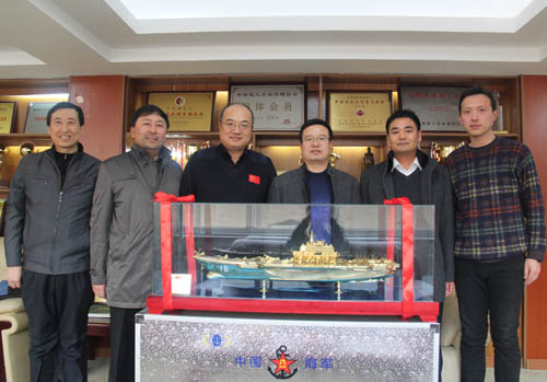 海川集團(tuán)與72695部隊簽訂軍民共建協(xié)議已有10個年頭。3月11日下午,在公司與軍民共建單位72695部隊進(jìn)行的一次聯(lián)誼活動中,部隊贈送給公司一艘“遼寧艦”航母模型,寓意祝愿企業(yè)做大做強(qiáng)。吳鑫董事長和仇建軍總裁在公司榮譽室接受贈品航模,并與身著便裝的周愛民政委(右三)和政治處李文清主任(右二)合影。